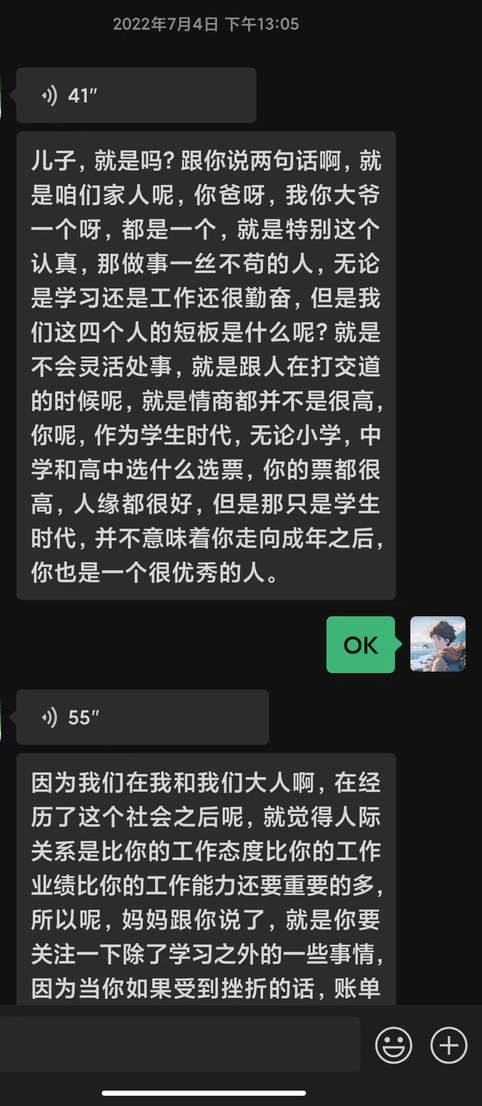 她想让我了解人文、了解社会、了解与人交往,但是她却总是泛泛而谈那些道理,自己却也无法设身处地的从其他人角度考虑问题(这点说起来就很复杂了,留着之后慢慢说),至少我认为她没有做到这些,每天就在我面前,今天递给我三本鸡汤成功学书籍,明天又突然心血来潮想让我看饭局上的故事,后天想让我看电视剧,想让我”了解社会“;高考结束之后每天都给我发我上学的时候也每天给我发那些成功学的视频号;